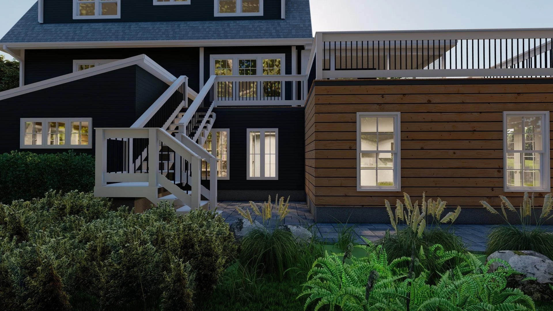 The design took into account an extra level of care to develop a unique, interesting, and safe space for a family member in need of their own private living area. This goal was accomplished while also enhancing the homes existing rear deck, utilizing the roof of the addition to provide a sprawling outdoor living space to sit and view the unobstructed view to the conservation area to the rear.