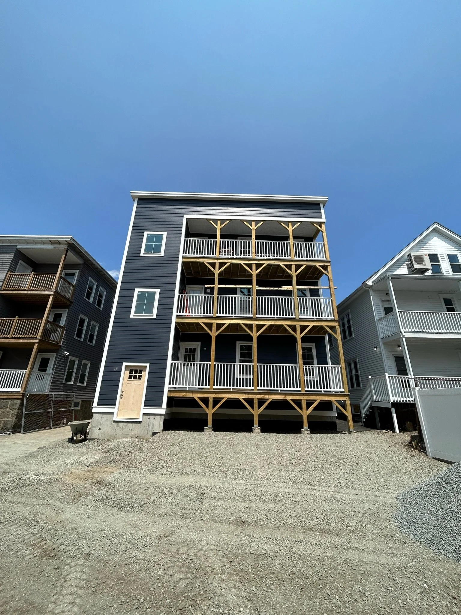 In place of an existing building that was unfortunately lost to a fire, this new triple decker breathes new life into this site, and the neighborhood at large with it’s bright and open entryways and open floor plans that each have access to sprawling, private decks.