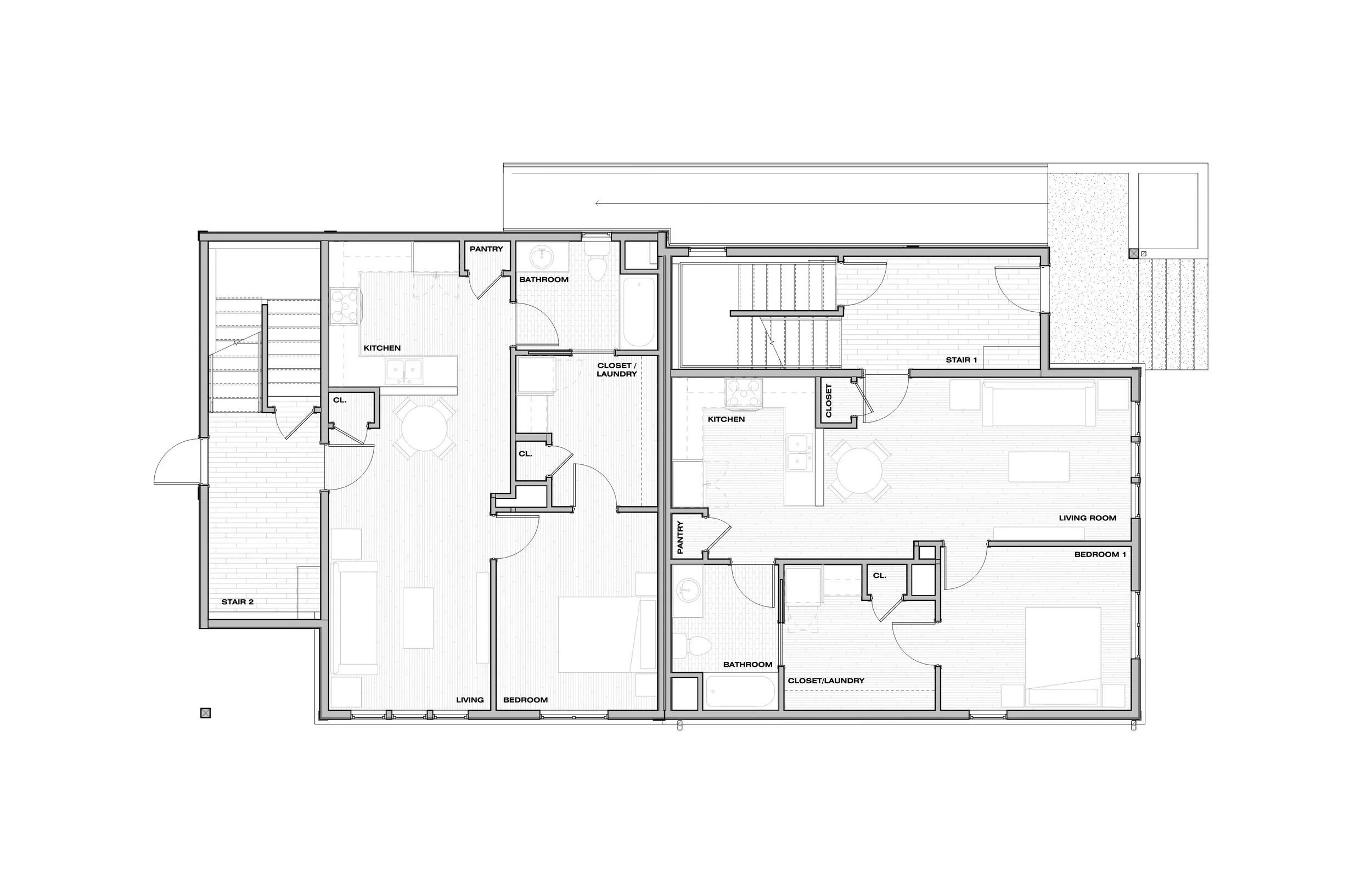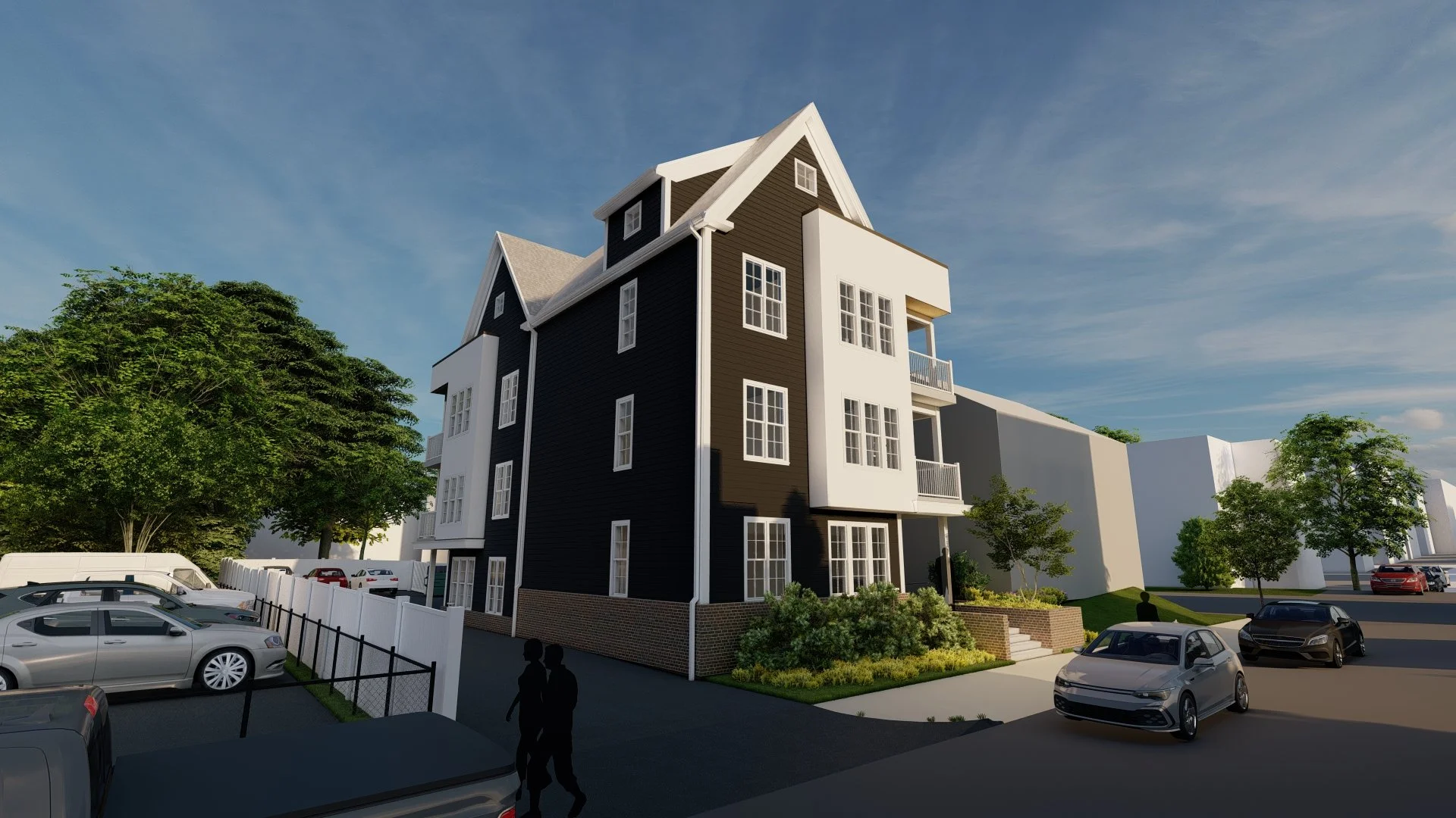 Located a few blocks from downtown Haverhill, this property was home to a beautiful Victorian style single-family home that had been converted into four separate living units. Unfortunately, the original home was lost to a fire. The goal was to design a building with 6 units that did not feel oversized for the neighborhood and fit in with character of the older style homes along the street. To accomplish this, the project consists of two sister triple decker dwellings. Each unit is a modest 1 bedroom unit with the complete suite of amenities: full kitchen, full bathroom, and in unit laundry. The two ground floor units are fully accessible while the upper four units provide slightly more living space via den & loft spaces.